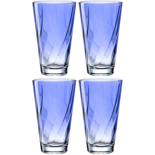 LEONARDO HOME Twist 046971 - Lot de 4 verres à jus de qualité supérieure et modernes - Verres à eau ergonomiques et incurvés - Pour un usage quotidien - Bleu - 300 ml