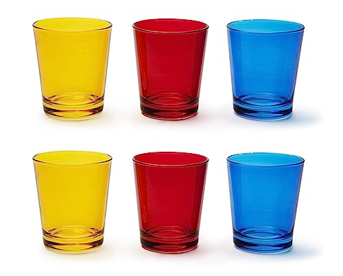 Excelsa Portofino Lot de 6 verres, Jaune/Rouge/Bleu, 30 Cl., Verre soufflé