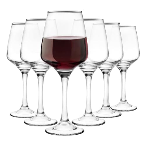 Pasabahce Wavy Lot de 6 verres à pied Rouge - Vin Blanc - Design Tulipe, Verre élégant pour table de Noël, Lavables au lave-vaisselle