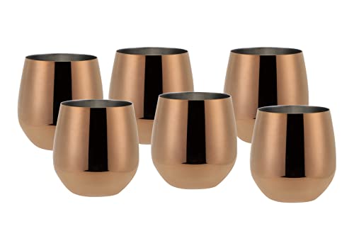 Echtwerk Verres à vin, 6 pcs. verres à vin rouge, gobelets en acier inoxydable, verres incassables, verres incassables, édition cuivre, 500 ml