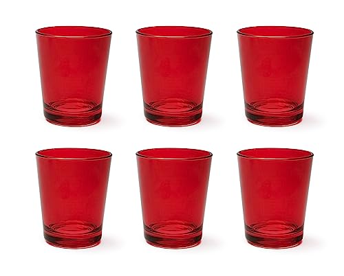 Villa d'Este Home Tivoli Lot de 6 verres à eau rouge 330 ml en pâte de verre soufflé, Cancun Satin