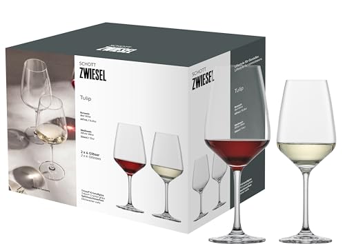 SCHOTT ZWIESEL Set de verres Tulip (set de 8), 4 verres à vin blanc et 4 verres à vin rouge dans chaque set,verres en cristal Tritan résistant au lave-vaisselle, fabriqué en Allemagne (art. n° 124094)