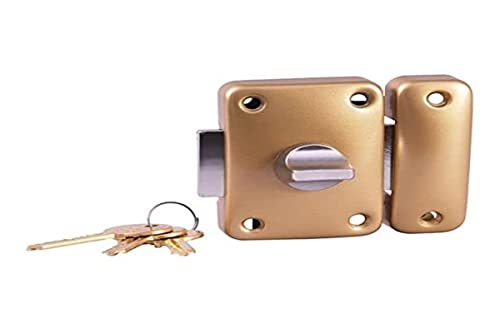 LINCE Verrou Targette Bouton Sans Clé 4940 – Verrou Sans Cylindre Extérieur, Fermeture 3 Pênes Ronds, Finition Dorée Installation Facile.