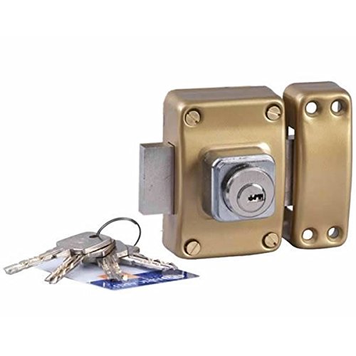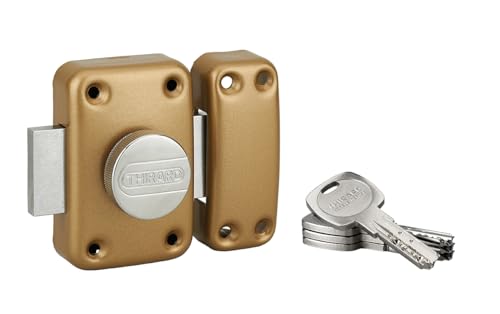 THIRARD 00077610 - Verrou De Porte D'Entrée Transit 2 À Bouton Et Cylindre 75 mm - Coffre en acier embouti - Type de verrou : bouton + cylindre 75mm - Verrous - Transit 2, Doré