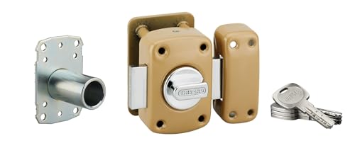 THIRARD 00971515 - Verrou Porte D'Entrée Design 5 Goup, 45 mm Bronze 3 Clés - Capot coffre acier embouti - Type verrou : bouton + cylindre 45mm - Verrous - Design