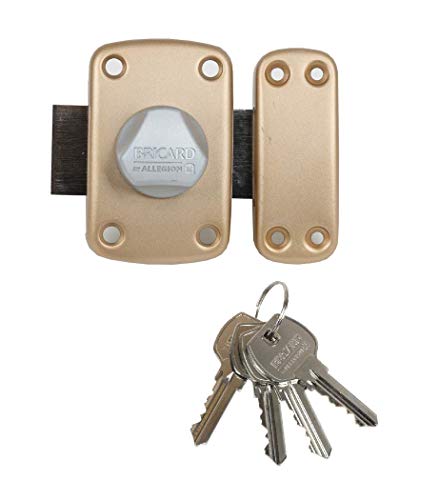 Bricard 21951 Verrou Ipsilon à bouton, cylindre longueur 40mm, coloris doré, 4 clés