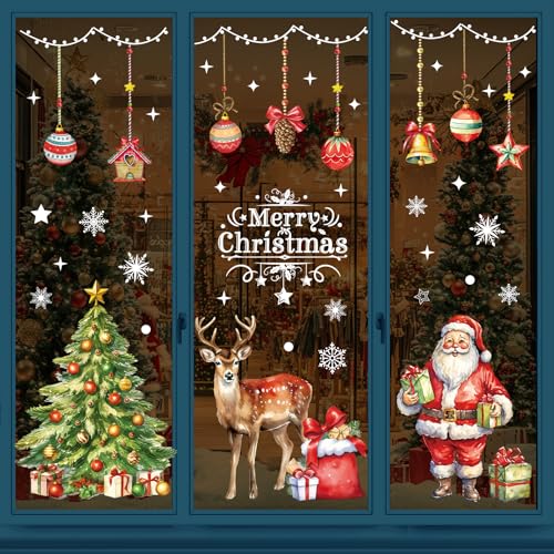 WUQNGI 86 Pièces Stickers Noel Fenetre Grand, Autocollant Noel Fenetre Reutilisable, 5 Feuilles Aquarelle Deco FenêTre Noel Electrostatique, PVC Decoration NoëL Vitre pour Magasin Vitrine Porte