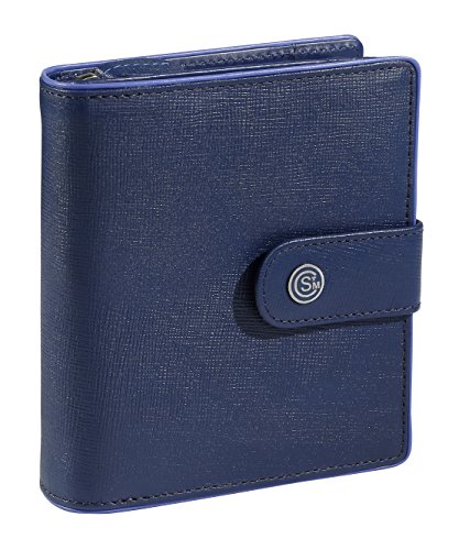 Canal Saint Martin - Portefeuille Femme en Cuir Bleu avec Porte Monnaie Fermeture zippée - 13 emplacements Cartes + 2 Compartiments Billets + fenêtre en PVC - Fermeture Pression soignée