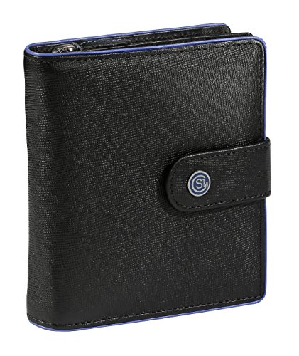 Canal Saint Martin - Portefeuille femme en cuir noir avec Porte monnaie fermeture zippée - 13 emplacements cartes + 2 compartiments à billets + fenêtre en PVC - Fermeture pression soignée