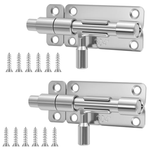 VINATO Verrou Porte Exterieur en Acier Inoxydable 304, Lot de 2 Loquet Porte Exterieur avec Vis, Serrure Porte Coulissante pour Portail, Fenêtre et Clôture, Argent