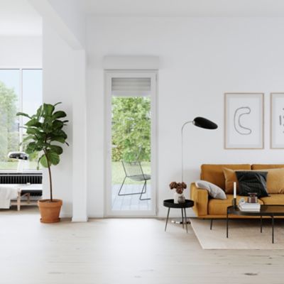 Porte fenêtre PVC 1 vantail tirant + volet roulant électrique GoodHome blanc - l.80 x h.205 cm, tirant droit