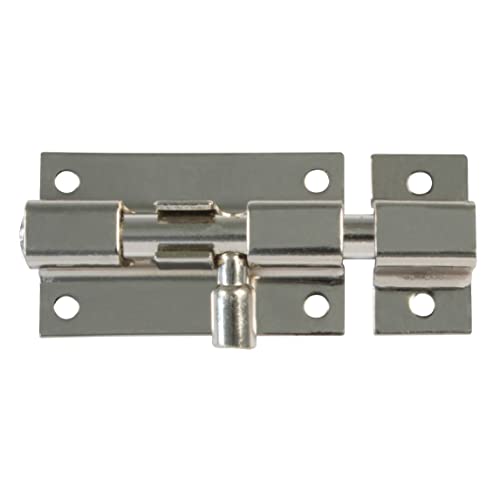 Amig - Verrou porte Mod. 390 | Targette de porte en Acier | Loquet de porte finission Plaqué Nickel | 50 mm | Serrure de porte ou fenêtre | Installation avec vis tire-fonds | Boulons pour porte