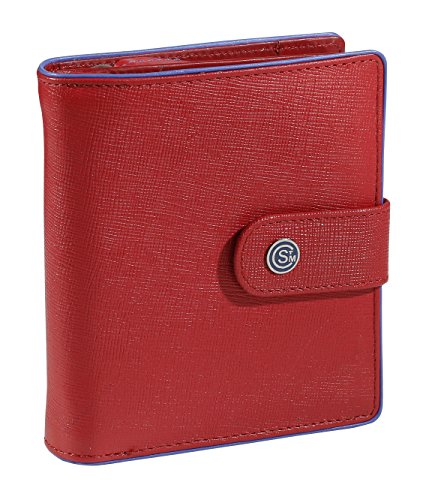 Canal Saint Martin - Portefeuille femme en cuir rouge avec Porte monnaie fermeture zippée - 13 emplacements cartes + 2 compartiments billets + fenêtre en PVC - Fermeture pression