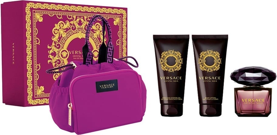 Versace Crystal Noir Eau de Toilette, 90 ml + Lait corporel, 100 ml + Gel douche, 100 ml + sac cosmétique