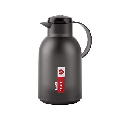 Emsa N4011900 Samba Verseuse isotherme avec fermeture Quick Press Translucide/noir 1,5 l 12 h et 24 h