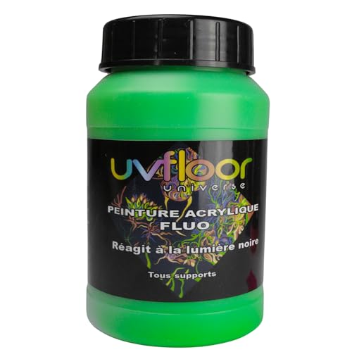 UV FLOOR - Peinture Acrylique Vert Fluo - Spéciale Lumière Noire Et Ultra Violet - Flashy - Fluide Et Ultra Pigmentée - Fluorescent - 250ml