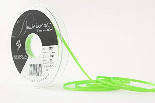 Berisfords Ruban de Satin Double-Face en Polyester 3 mm, Vert Fluo