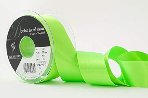Berisfords Ruban de Satin Double-Face en Polyester 35 mm, Vert Fluo