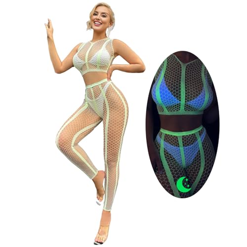 comeondear Halloween Costume Bodystocking Sexy Femme Noël Bodys Résille Ensemble Lingerie Sexy Tenue de Festival Rave Clubwear Combinaison Bas Nylon Filets Vêtements de Nuit Vert,Taille unique