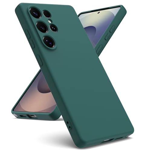 Oududianzi-Coque Compatible avec Samsung Galaxy S25 Ultra 5G, [Silicone Liquide] [Intérieur Microfibre] Souple Étuis en Caoutchouc Housse Antichoc Protection Bumper Coque Samsung S25 Ultra-Vert Nuit