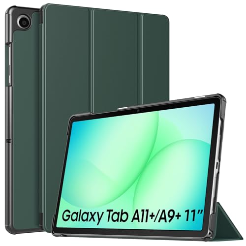 MoKo Coque pour Samsung Galaxy Tab A11+ 11'' 2025(SM-X230/X236/X238)/ Tab A9+ 11" 2023(SM-X210/X216/X218), avec Arrière TPU Souple à Rabat, Support Semi-Transparent, Réveil/Sommeil Auto, Vert Nuit
