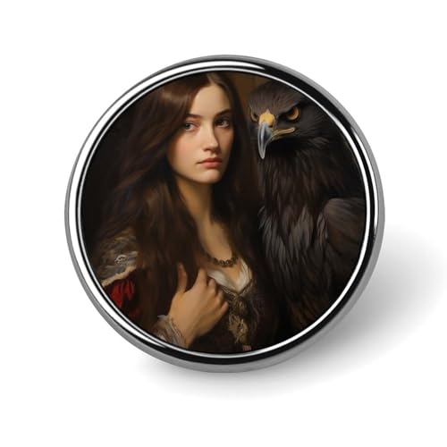 Broche ronde Aigle et une femme pour homme et femme - Badge tendance - Pour robe, veste, sac à dos