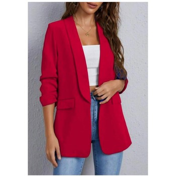 Générique Veste Blazer Femme Chic Et Elegant - Blazer Femme Rouge - Veste De Travail Formelle Décontractée Coupe Ajustée Manches Longues Couleur Unie