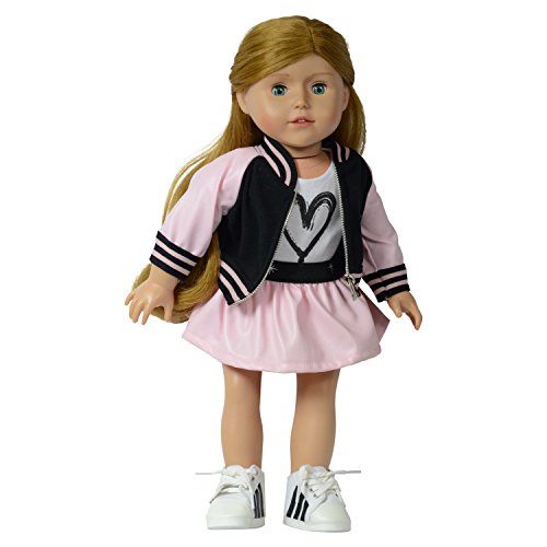 The New York Doll Collection Bombardier Veste Ensemble (Rose) pour Mode Fille Poupées - Comprend Une Veste Zippée, Un T-Shirt et Jupe - Convient à 18 Pouces/46cm Poupées - Vêtements de Poupée