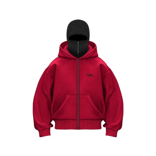 Bastwahl Balaclava Hoodie Homme Femme - Sweat à Capuche Zip Zippé Veste Chaude Cagoule Moto Masque Anti-Vent pour Sports de Plein Air Vélo Manteau Automne et Hiver Sweat À Manches Longues