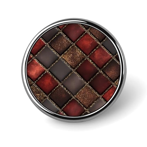 Broche ronde en forme de carreaux de mosiac en verre rose diagonale pour homme et femme - Broche tendance pour col, robe, veste, sac à dos