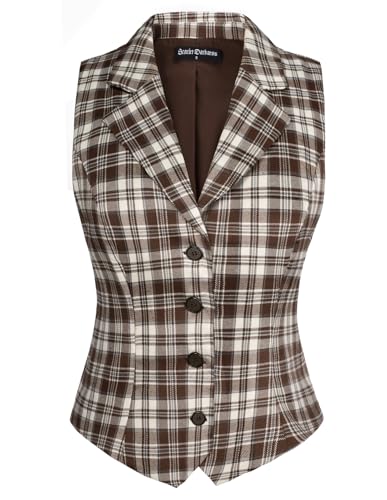 Scarlet Darkness Jupe trapèze pour femme 50s à carreaux - Veste de costume entièrement doublée avec col à encoches et 4 boutons - Style vintage, Motif carreaux Marron, M