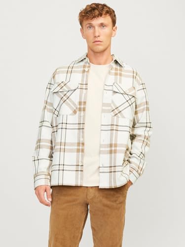 JACK & JONES Jprraymond Veste à Carreaux pour Homme, Cloud Dancer/Fit : Coupe Confortable, S