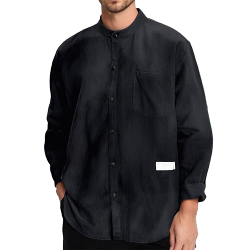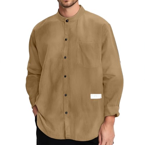 Chemise Col Mao Homme - Veste Chemise en Velours côtelé pour Homme Sweat-Shirt à Capuche boutonné décontracté à Manches Longues pour Quotidien