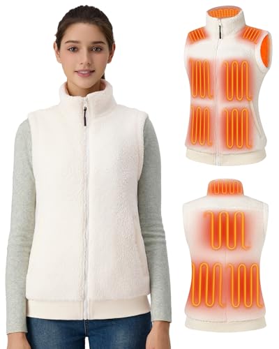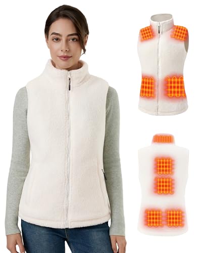 GOTOBI Gilet Chauffant Femme PolaireAvec Batterie 16000mah 7,4v Incluse, 9 Zones De Veste Chauffante, Gilet Chauffant Electrique Avec 3 TempéRatures RéGlables Pour Le Travail En ExtéRieur,Blanc,XS