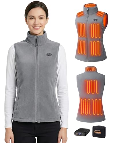 Topdot Polaire Gilet Chauffant Femme Avec Batterie 7,4V 16000 mAh Incluse,10 Zones de Avec 3 TempéRatures RéGlables,Electrique Veste Chauffante Pour Le Travail En ExtéRieur,Ski,Gris,S