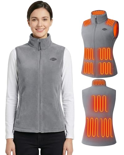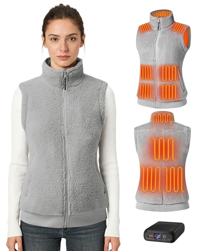 Topdot Polaire Gilet Chauffant Femme Avec Batterie 16000 mAh Incluse,10 Zones de Veste Chauffante,Gilet Chauffant Electrique Avec 3 TempéRatures RéGlables Pour Le Travail En ExtéRieur,Ski,Gris,XS