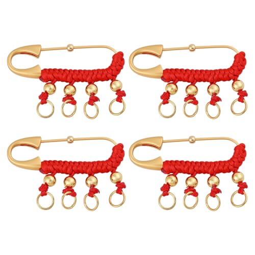CHGCRAFT 4 Broche Épingle à Nourrice Vintage en Laiton Rouge avec Boucle en Fer Doré pour Femme Pull Veste Vêtements