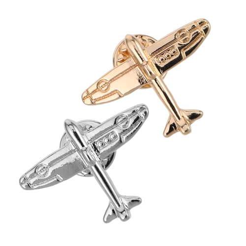 POPETPOP Broche Avion Unisexe en Métal Doré et Argenté, Accessoire pour Revers de Veste, Mini Épingles Élégantes pour Femme, Costume et Chemise, Événement Formel et Quotidien, Lot 2 Pièces