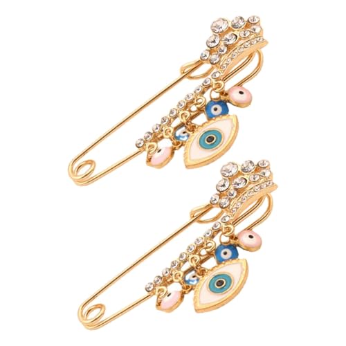 JOINPAYA Lot de 2 Broches Œil Maléfique en Alliage Doré Épingles Décoratives Turques Bleues Bijoux pour Femme Accessoires Polyvalents pour Châle Manteau et Veste Protection le Mauvais