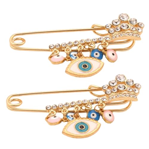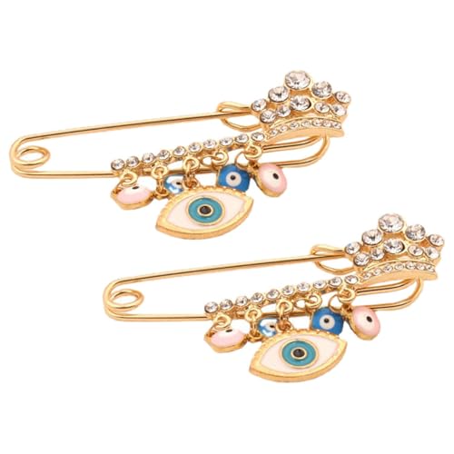 BESTonZON Lot de 2 Broches Œil Maléfique en Alliage Doré Épingles Décoratives Turques Bleu Turquoise Accessoire pour Femme pour Châle Pull Manteau et Veste
