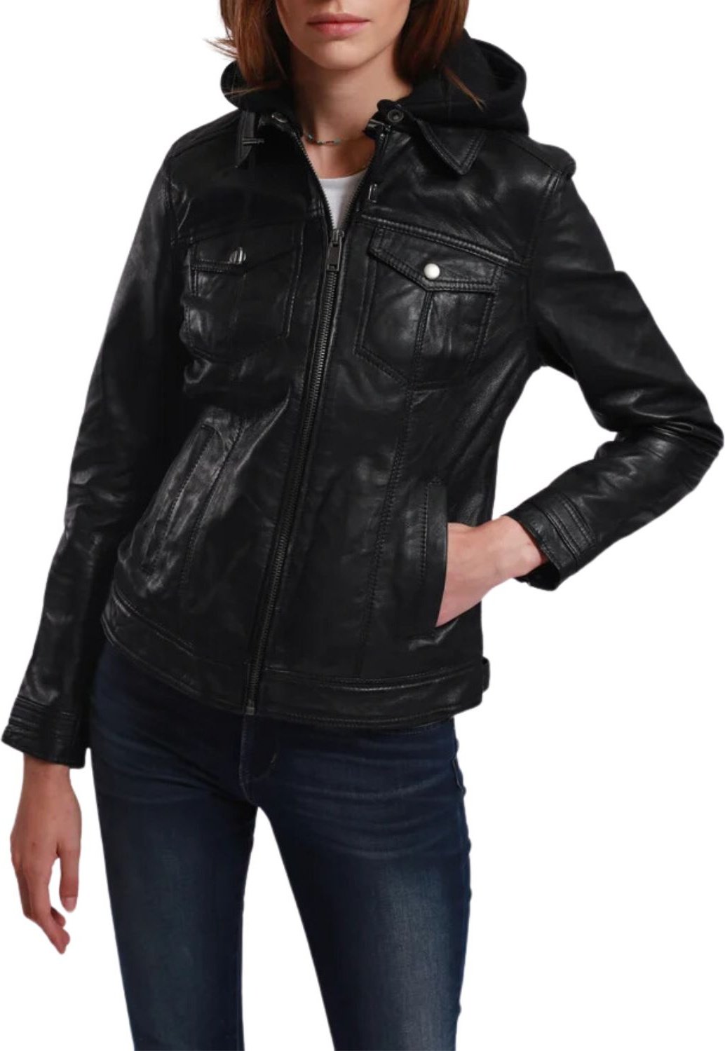 AccueilMode & AccessoiresVêtementsVestes & ManteauxVestes & pulls polairesVeste en cuir à capuche femme