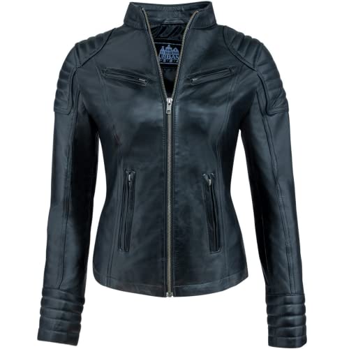 URBAN 5884 Veste en Cuir RT01 Femme, Veste en Peau d'Agneau de Style Motard, Bien Ajustée et Douce au Toucher