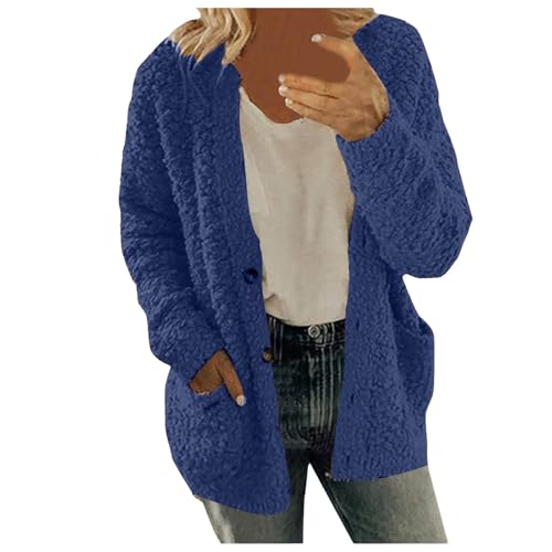 Veste à Revers épais pour Femme, Veste Sherpa à Double Poche, Manteau Polaire Boutonné, Veste Décontractée Surdimensionnée à Revers, Vêtements D'extérieur Chauds (Gris,M)