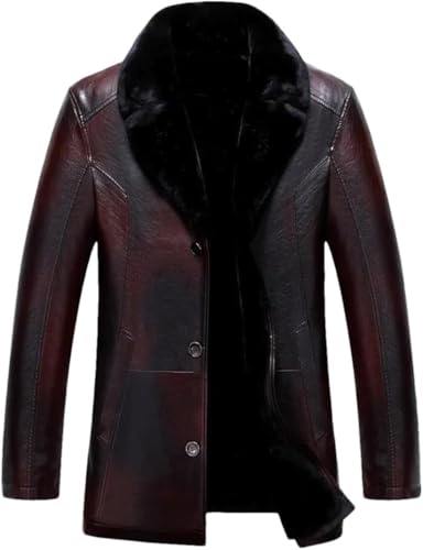 Veste en Cuir Oversize Hommes Manteau De Fourrure Hommes Simple Boutonnage Vestes en Cuir épais Trench-Coat Décontracté, Brown, 3XL