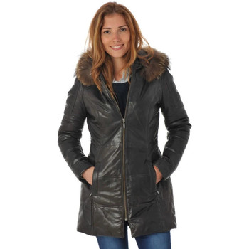 VLAB Veste Femme Chiodo Effet Fourrure FW56036 FACE Couleur Marron
