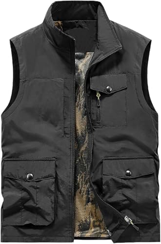 VUIKLCty Veste d'extérieur sans manches pour homme – Gilet de pêche respirant à séchage rapide – Gilet multi-poches multifonction pour la chasse, le golf (gris, XXL)