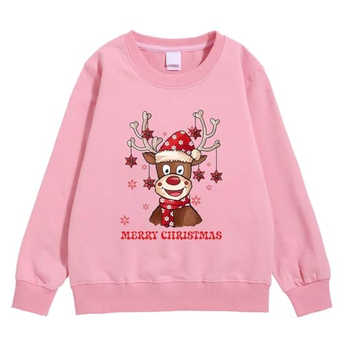 Générique Pull De Noel Enfant Fille Pulls De Noel Veste d'hiver Enfant Col Rond Gris Rose Mignon avec Imprimé Noël Fun Pull De Noël Enfant Veste De Survêtement Enfant