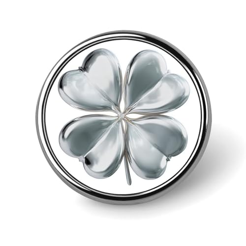 Broche ronde trèfle à quatre feuilles argentée brillante pour homme et femme, accessoire de mode pour col, veste, sac à dos