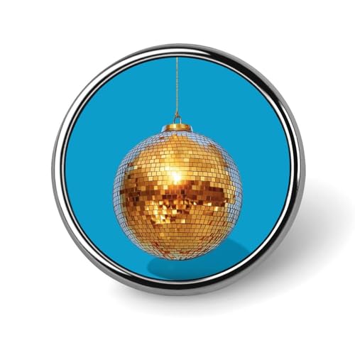 Grande broche ronde dorée brillante sur boule disco bleue pour homme et femme - Badge tendance pour collier, robe, veste, sac à dos