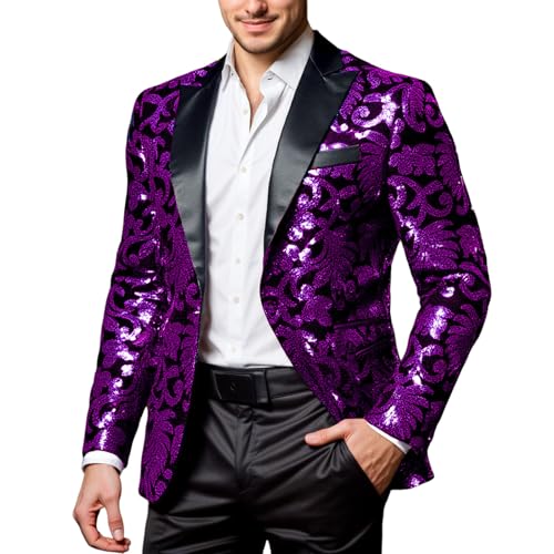 Générique Veste Disco Homme Brillante,Veste à Paillettes Costume De DéFilé De ScèNe Costume De Longueur Moyenne (Purple, 3XL)